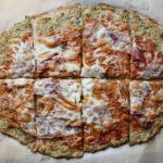 Remove from oven and add your pizza sauce, prosciutto and mozzarella cheese.