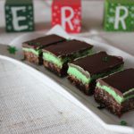 In a separate bowl cream together 4 tbsp butter, milk and vanilla instant pudding powder. Mix in icing sugar and food colouring (if using) until well combined. Spread over chocolate base and let harden.