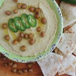 In a blender or food processor add jalapenos, chick peas, tahini, water, roasted garlic, lemon juice, olive oil and a good sprinkle of salt and pepper. Blend for about 3-4 minutes scraping down sides as needed.
