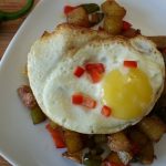 Turn heat down to medium low and continue to cook for another 7-10 minutes. Add in your onions and bell peppers. Season with a pinch of salt and pepper. Sprinkle on your old bay seasoning or whatever seasoning you prefer. Continue to flip or stir the potatoes for another 5-10 minutes.